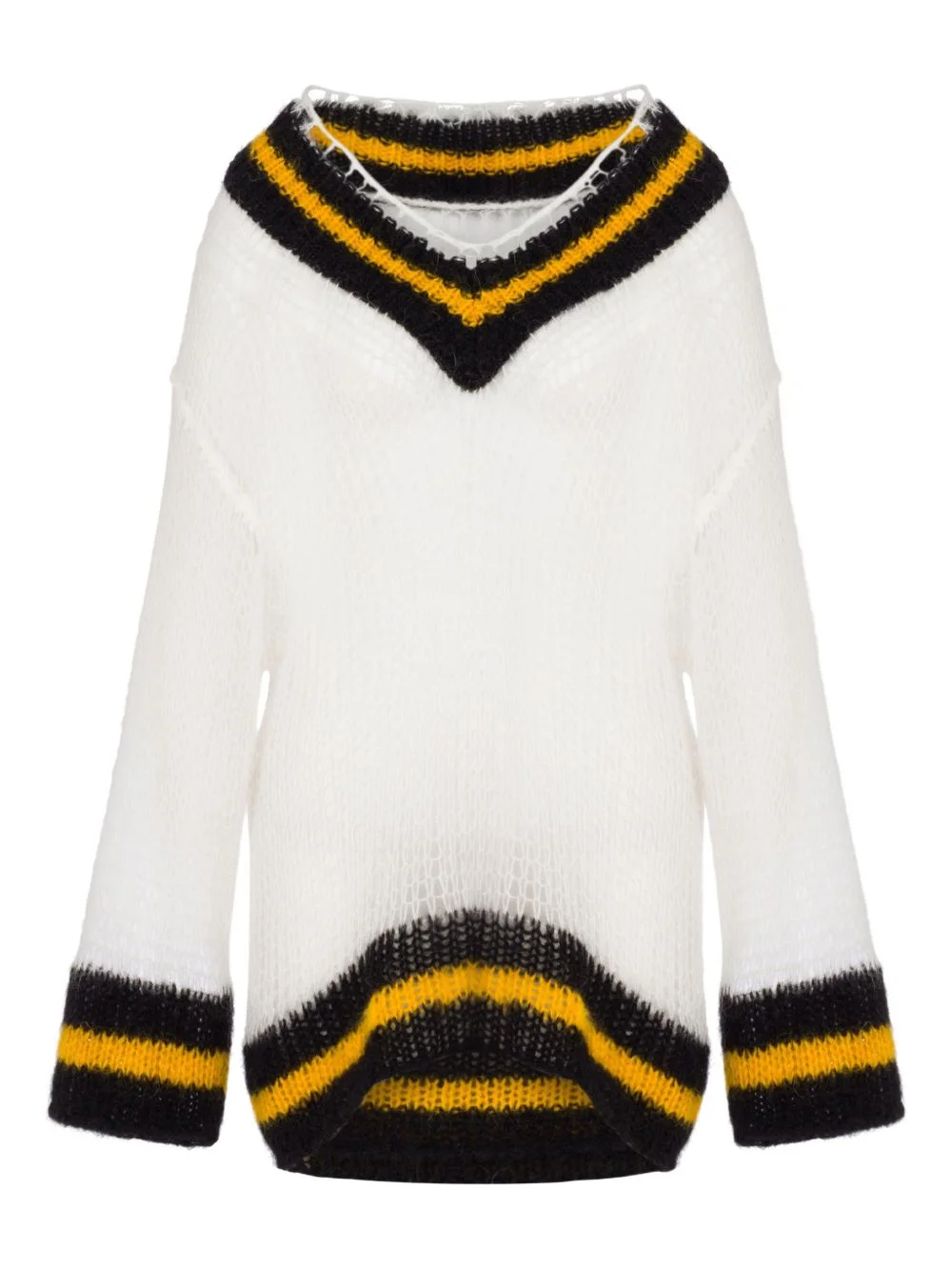V-neck sweater Highlights - White - Striped - V-neck - Long sleeves Made in Italy Composition Alpaca 35%, Mohair 35%, Polyamide 30% Washing instructions Dry Clean Only