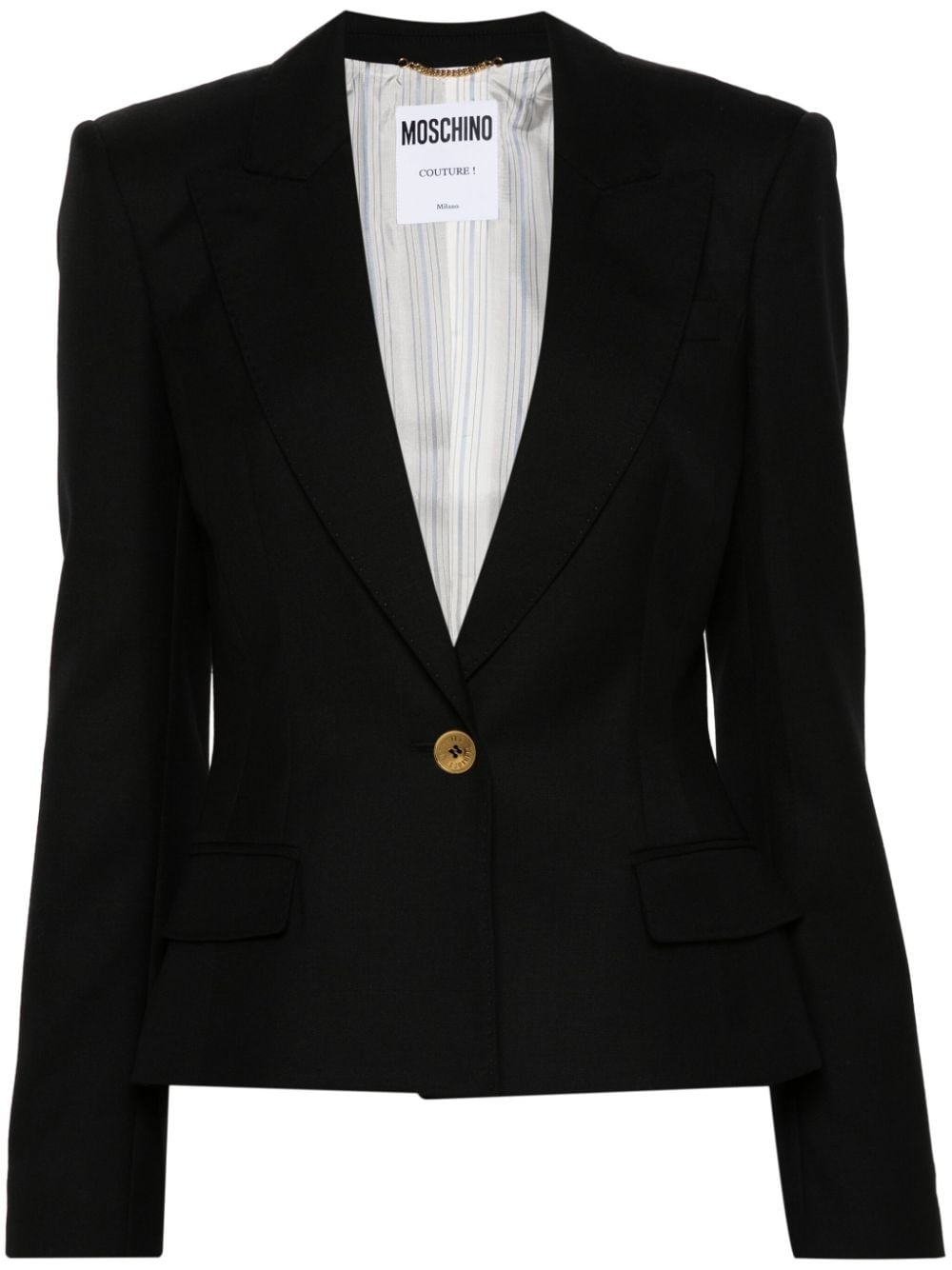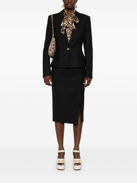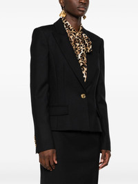 virgin wool blazer Highlights - Black - Virgin wool - Gabardine weave - Peak lapels - Front button fastening - Shoulder pads - Long sleeves with buttoned cuffs - Chest welt pocket - Two front flap pockets - Straight hem - Satin lining Made in Italy Composition Lining: Acetate 51%, Viscose 49% Outer: Virgin Wool 100% SIZE & FIT Model measurements Height 5 ft 10 in(1.77 m) Bust/Chest 32.28 in(82 cm) Hips 35.03 in(89 cm) Waist 25.19 in(64 cm) FittingInformation Designed for a slim fit that sits just away from the body offering a close yet comfortable fit The internal shoulder pads offer a structured shape Made from a midweight non-stretch fabric This piece fits true to size – take your usual size