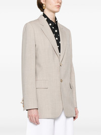 virgin-wool blazer Highlights - Sesame beige - Front button fastening - Buttoned cuffs - Two front flap pockets - American rear vent Made in Italy Composition Lining: Acetate 60%, Cupro 40% Outer: Virgin Wool 100% SIZE & FIT Model measurements Height 5 ft 10 in(1.77 m) Bust/Chest 31.1 in(79 cm) Hips 34.64 in(88 cm) Waist 24.01 in(61 cm) FittingInformation Designed for a slim fit that sits just away from the body offering a close yet comfortable fit The internal shoulder pads offer a structured shape Made from a midweight non-stretch fabric