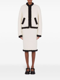 waffle knit virgin wool blazer Highlights - White/black - Virgin wool - Waffle knit - Contrasting trim - Elbow patches - Logo patch to the rear - Slip pockets to the sides - Concealed front zip fastening Made in Italy Composition Virgin Wool 100%