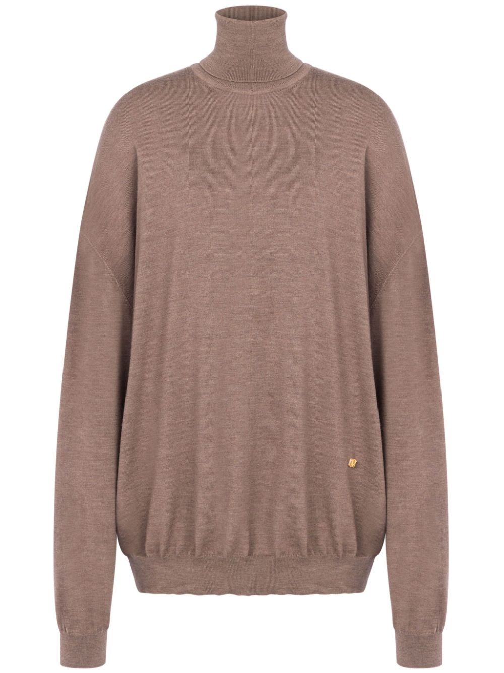 wide-sleeves virgin wool jumper Highlights - Almond beige - Virgin wool - Fine knit - High neck - Elasticated cuffs - Elasticated hem Made in Italy Composition Virgin Wool 100%