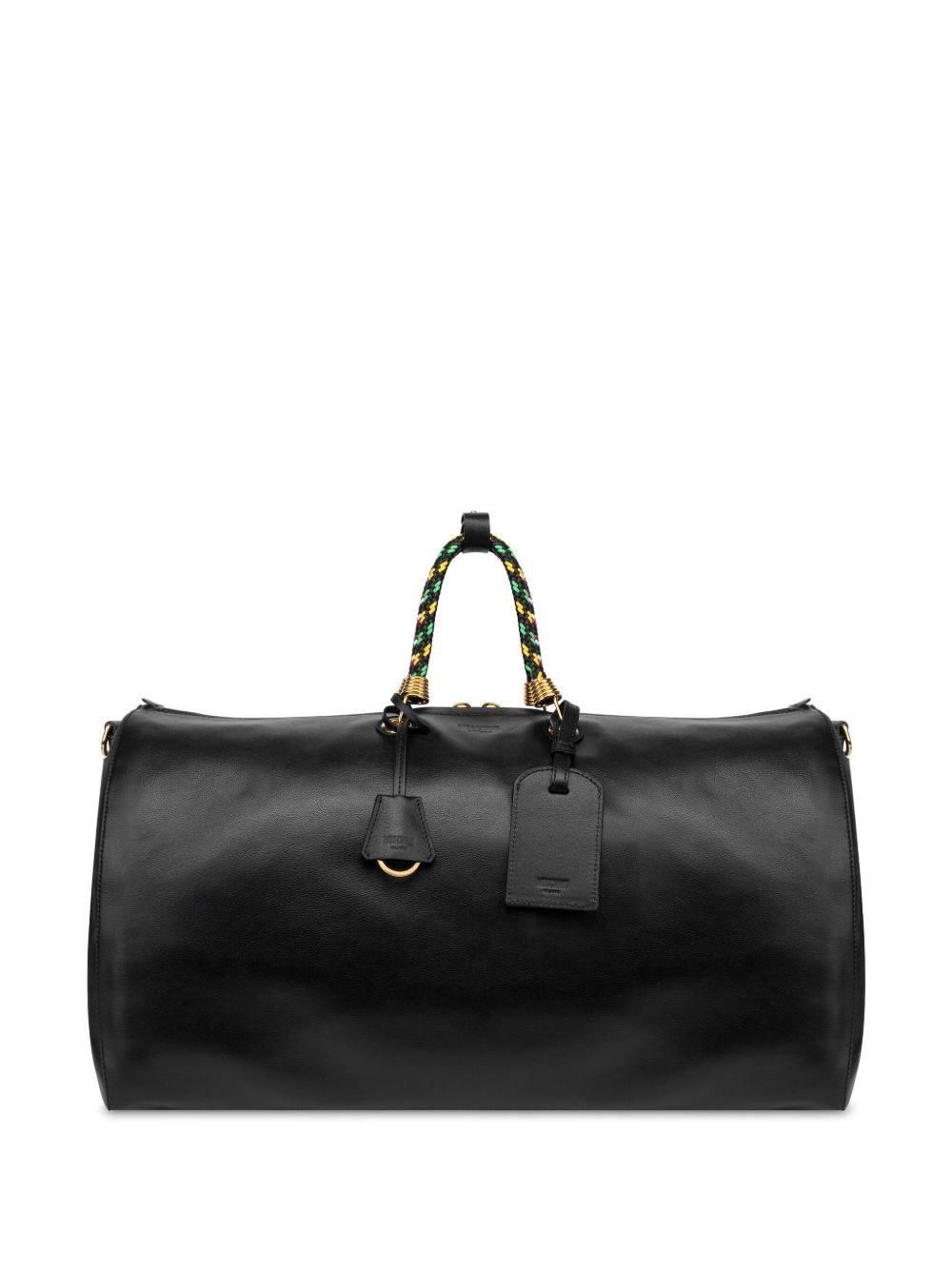 zip-up leather duffle bag Highlights - Black - Calf leather - Two-way zip fastening - Two top handles - Detachable shoulder strap - Logo tag - Hanging key fob - Debossed logo to the rear - Main compartment - Internal zip-fastening pocket Made in Italy Composition Leather 100%
