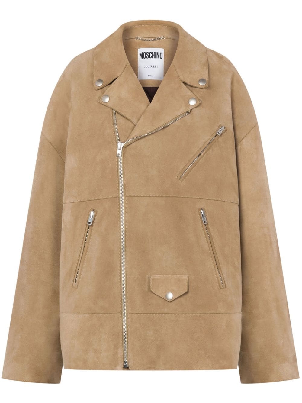 zip-up suede biker jacket Highlights - Beige - Suede - Notched collar - Long sleeves - Cuff zips - Off-centre front zip fastening - Front zip fastening pockets - Straight hem Made in Italy Composition Goat Skin 100%