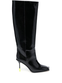 110mm patent leather boots Highlights - Black - Calf leather - Patent finish - Square toe - Knee-high - 110mm high stiletto heel Made in Italy Composition Outer: Patent Calf Leather 100% Sole: Calf Leather 100% Lining: Calf Leather 100% SIZE & FIT Measurement CIRCUMFERENCE 9.44 in(24 cm) HEEL 4.33 in(11 cm) HEIGHT 16.53 in(42 cm)