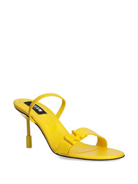85mm logo-plaque sandals Highlights - Canary yellow - Slip-on style - High stiletto heel - Branded leather insole - Round open toe Imported Composition Lining: Calf Leather 100% Sole: Calf Leather 100%, Rubber 100% Outer: Calf Leather 100% SIZE & FIT Measurement HEEL 3.34 in(8.5 cm)