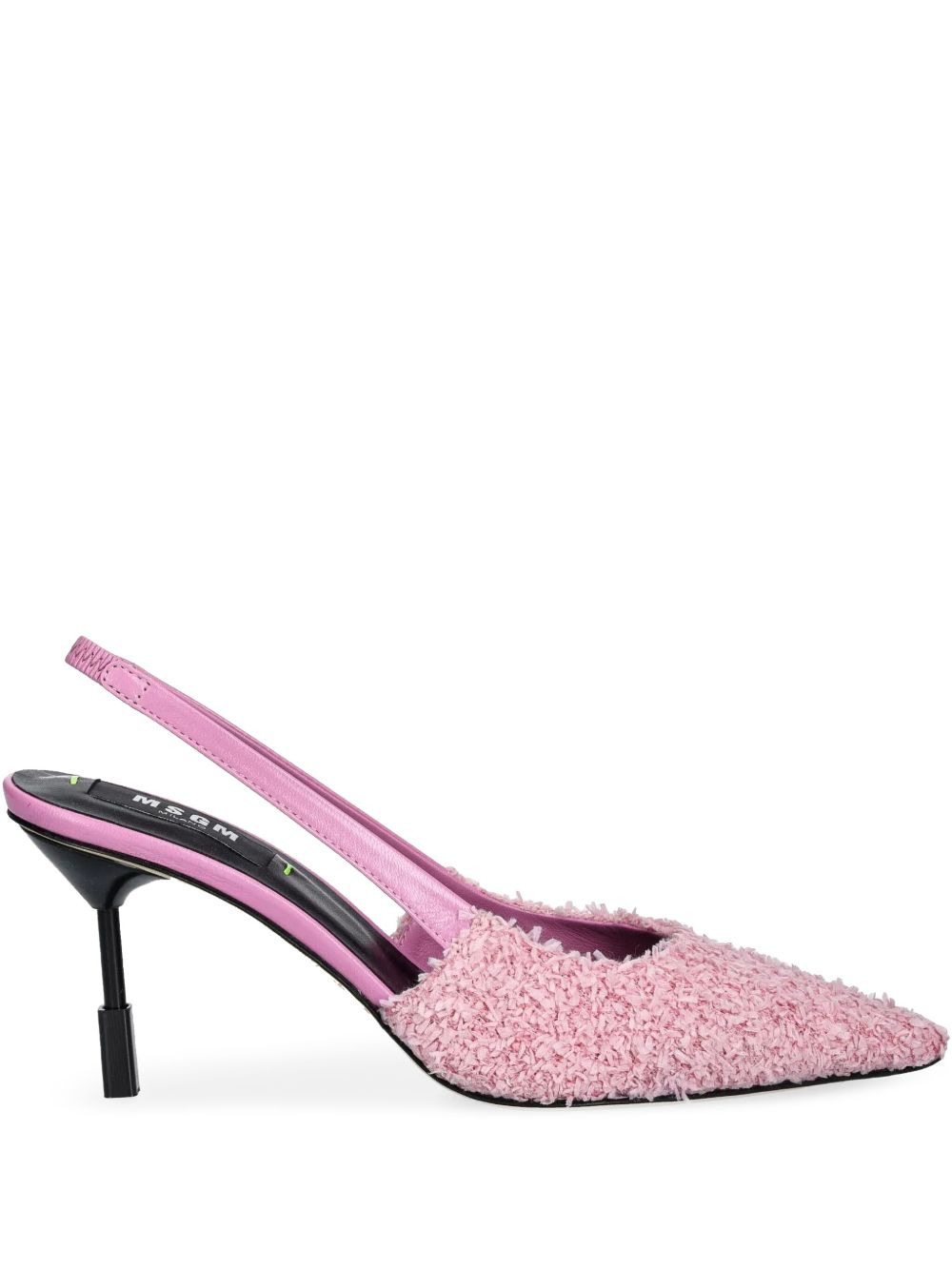 85mm slingback pumps Highlights - Light pink - Elasticated slingback strap - High heel - Pointed toe - Branded leather insole Made in Italy Composition Sole: Calf Suede 100%, Rubber 100% Outer: Fabric 100% Lining: Calf Leather 100% SIZE & FIT Measurement HEEL 3.34 in(8.5 cm)