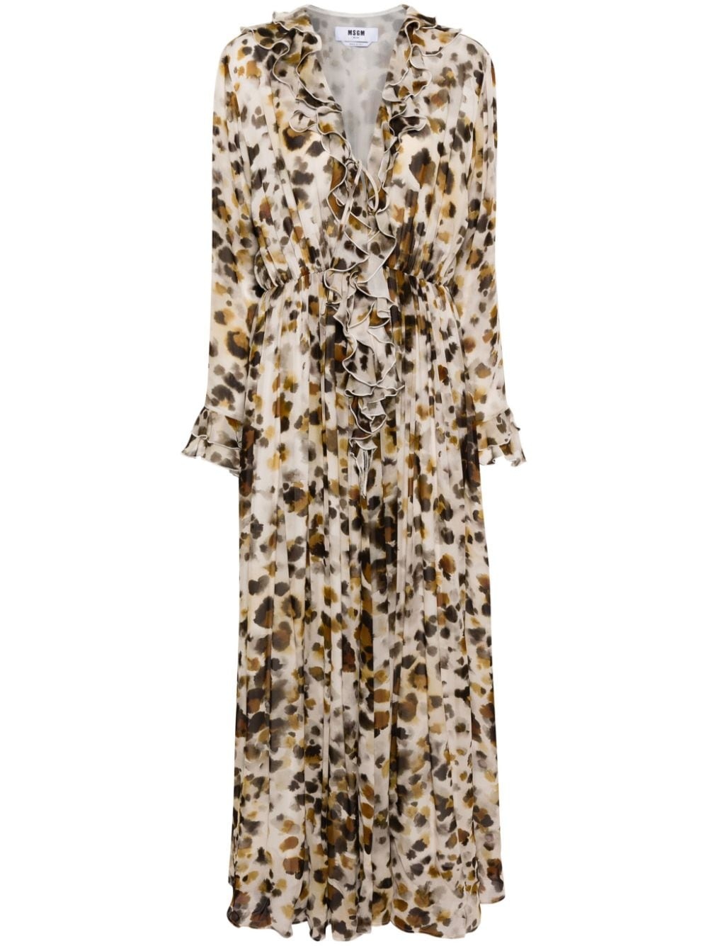 Long ruffled dress with georgette print