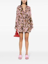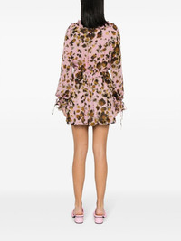 animal-print chiffon mini dress Highlights - Pink, brown - Chiffon - Animal print - V-neck - Ruffle collar - Long sleeves - Ruffle tied cuffs - Adjustable fit - Tied waist - Flared skirt - Asymmetric hem - Full lining Made in Italy Composition Outer: Viscose 100% Lining: Polyester 100% SIZE & FIT Model measurements Height 5 ft 10 in(1.78 m) Bust/Chest 33.07 in(84 cm) Hips 35.82 in(91 cm) Waist 25.98 in(66 cm) FittingInformation Designed to be unstructured, offering a loose fit throughout The adjustable drawstring means that you can adjust this piece’s fit to suit your comfort and preference Made from a midweight non-stretch fabric This piece fits true to size – take your usual size