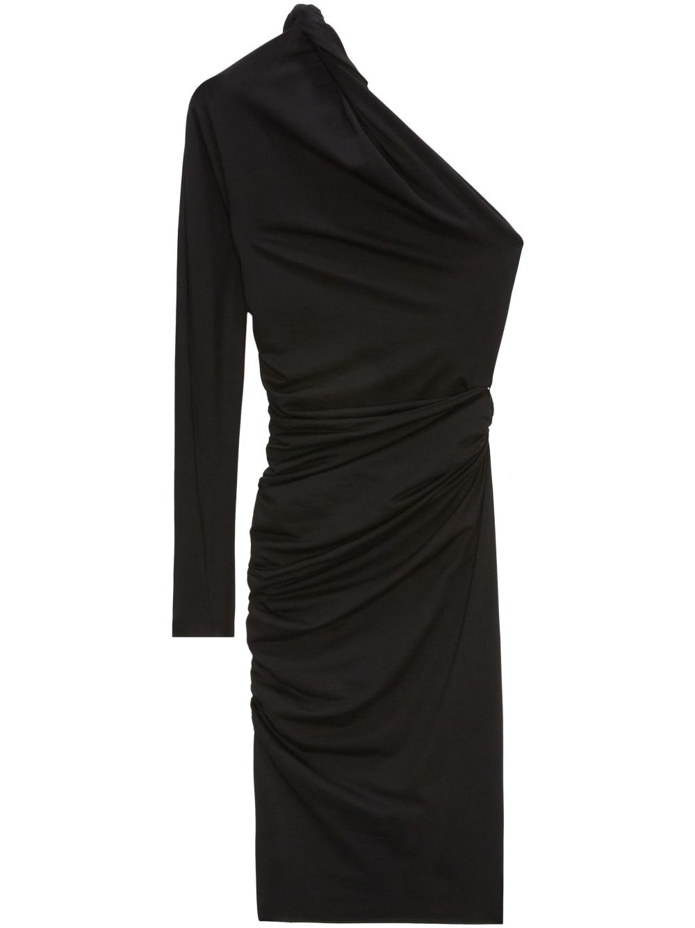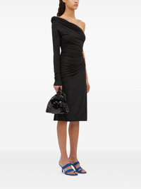 asymmetric midi dress Highlights - Black - Side zip fastening - One-shoulder - Draped design - Below-knee length Imported Composition Fabric 100%