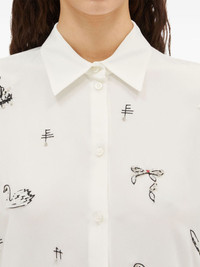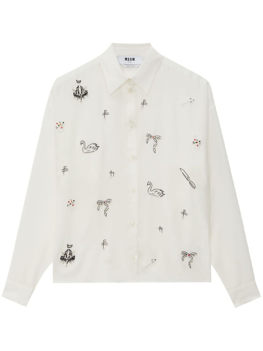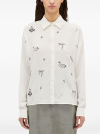 beaded button-up shirt Highlights - White - Bead embellishment - Classic collar - Front button fastening - Long sleeves - Straight hem Imported Composition Polyester 100%