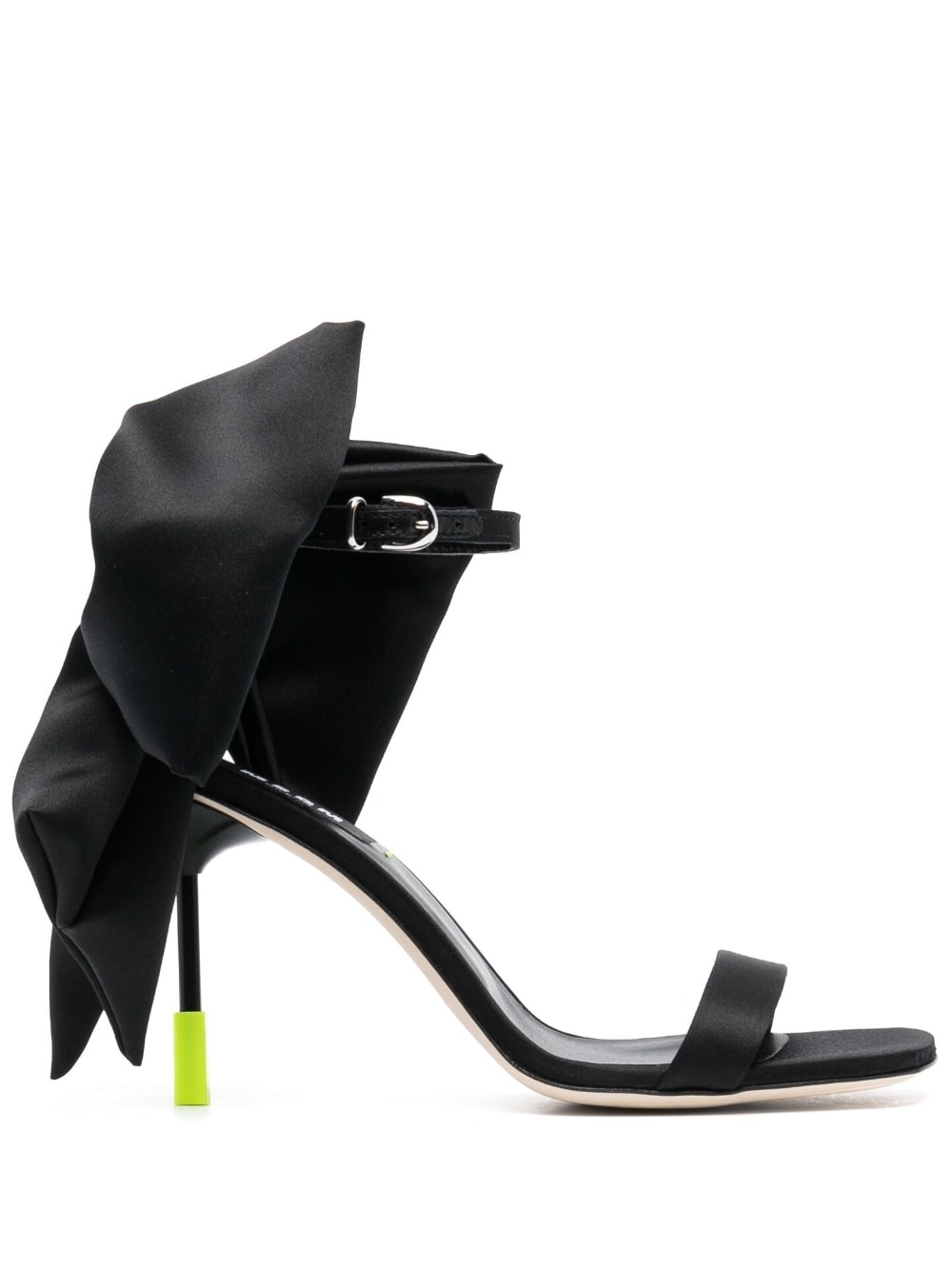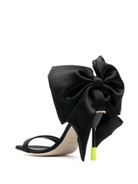 bow-detail 100mm leather sandals Highlights - Black/fluorescent green - Calf leather - Satin finish - Oversize bow detail - Branded leather insole - Open toe - Buckle-fastening ankle strap - 100mm high heel Made in Italy Composition Sole: Calf Leather 100% Outer: Fabric 100% Lining: Calf Leather 100% SIZE & FIT Measurement HEEL 3.93 in(10 cm)