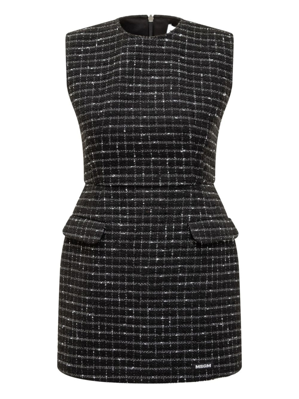 checked tweed dress Highlights - Black - Checked tweed - Sleeveless - Concealed zip fastening - Flap pockets Imported Composition Polyester 59%, Fabric 25%, Viscose 16% Washing instructions Read Manufacturer Guidelines