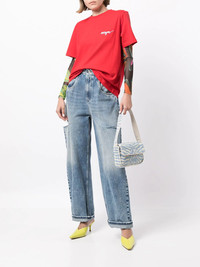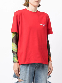 chest-logo crew neck T-shirt red cotton logo print at the chest crew neck short sleeves straight hem Made in Italy Composition Cotton 100% SIZE & FIT Model measurements Height 5 ft 9 in(1.76 m) Bust/Chest 29.13 in(74 cm) Hips 33.07 in(84 cm) Waist 22.83 in(58 cm) FittingInformation This piece fits true to size. We recommend you get your regular size Cut for a relaxed fit Made with a mid-weight fabric Washing instructions Machine Wash