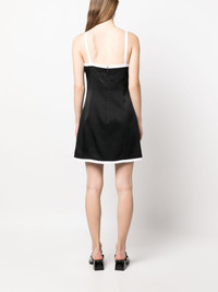 contrast-trim minidress A showcase of MSGM's softer side, this minidress arrives in timeless black with a solid white trim. The thigh-skimming silhouette is punctuated with delicate bows at the straps and slit. Highlights - Black/white - Bow detailing - Contrasting trim - Asymmetric neck - Thin shoulder straps - Rear zip fastening - Thigh-length - Straight hem Made in Italy Composition Outer: Viscose 100% SIZE & FIT Model measurements Height 5 ft 9 in(1.75 m) Bust/Chest 31.1 in(79 cm) Hips 33.46 in(85 cm) Waist 23.22 in(59 cm) FittingInformation Designed for a slim fit that sits just away from the body offering a close yet comfortable fit Made from a midweight non-stretch fabric This piece fits true to size – take your usual size