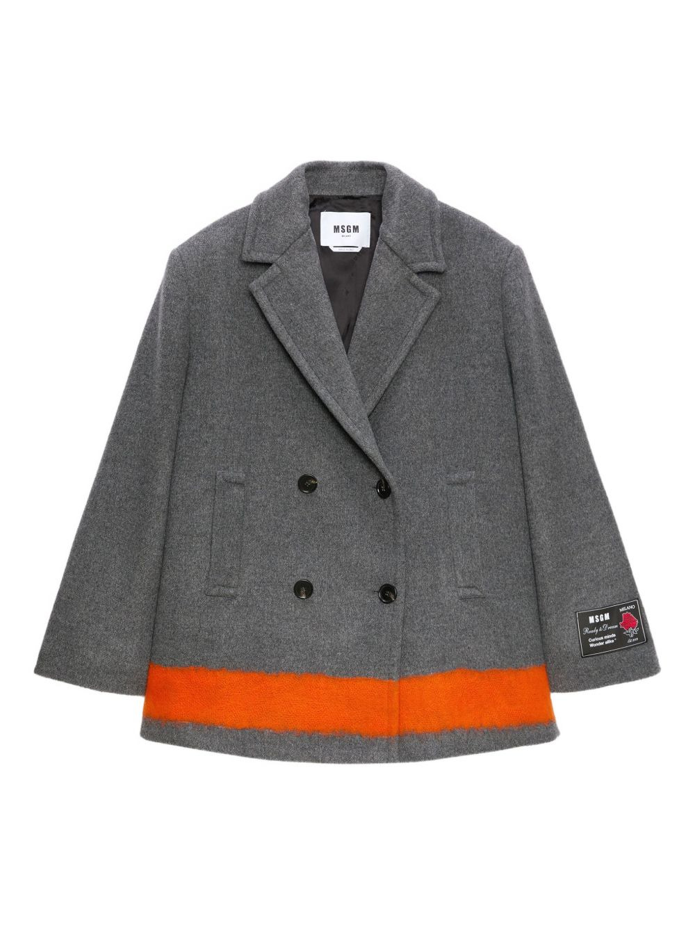 contrasting-band double-breasted coat Highlights - Dark grey - Double-breasted fastening - Contrasting panel - Long sleeves Made in Italy Composition Wool 70%, Polyamide 30% Washing instructions Read Manufacturer Guidelines