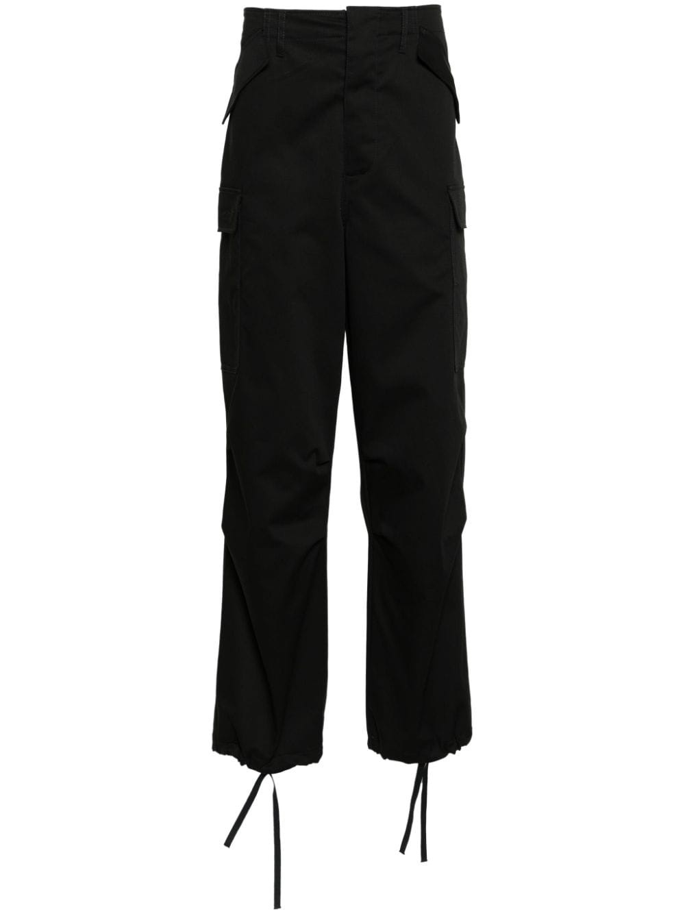 wide-leg cargo trousers Highlights - Black - Cotton - Draped strap detailing - Belt loops - Concealed front fastening - Straight leg - Two press-stud fastening side pockets - Two side cargo pockets - Two rear flap pockets - Drawstring cuffs - Long length Made in Italy Composition Lining: Cotton 100% Outer: Cotton 98%, Elastane 2% SIZE & FIT Model measurements Height 6 ft 1 in(1.86 m) Bust/Chest 36.61 in(93 cm) Hips 37 in(94 cm) Waist 28.74 in(73 cm) FittingInformation Designed with a wide leg, offering a loose and roomy fit Made from a midweight non-stretch fabric This piece fits true to size – take your usual size