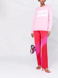 crew neck logo-print sweatshirt rose-pink/white cotton crew neck logo print to the front long sleeves ribbed hem Made in Italy Composition Cotton 100% SIZE & FIT Model measurements Height 5 ft 11 in(1.8 m) Bust/Chest 31.88 in(81 cm) Hips 35.03 in(89 cm) Waist 24.01 in(61 cm) FittingInformation This piece fits true to size. We recommend you get your regular size Cut for a relaxed fit Made with a mid-weight fabric Washing instructions Hand Wash