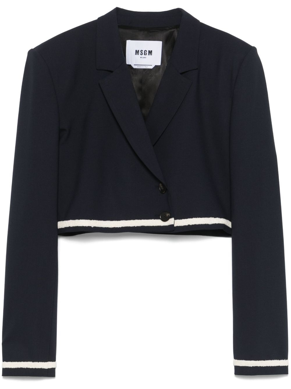 cropped blazer Highlights - Navy blue - Double-breasted button fastening - Shoulder pads - Long sleeves Made in Italy Composition Outer: Virgin Wool 96%, Elastane 4% Lining: Viscose 100% Washing instructions Dry Clean Only