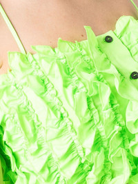 cropped ruffled top acid green cropped fully ruffled front button fastening spaghetti straps Made in Italy Composition Polyester 100% SIZE & FIT Model measurements Height 5 ft 9 in(1.76 m) Bust/Chest 33.07 in(84 cm) Hips 34.64 in(88 cm) Waist 25.59 in(65 cm) FittingInformation This piece fits true to size. We recommend you get your regular size Cut for a slim fit Made with a lightweight non-stretch fabric Washing instructions Dry Clean Only