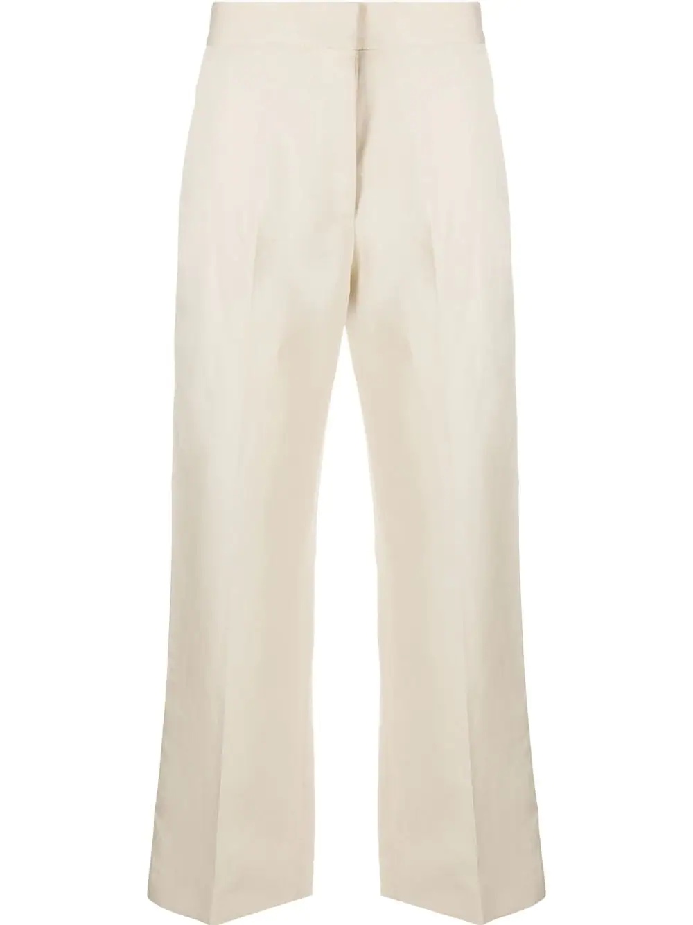 cropped straight-leg trousers Highlights - Beige - Lyocell-linen blend - High waist - Concealed front fastening - Two rear welt pockets - Cropped Made in Italy Composition Lining: Polyester 100% Outer: Linen/Flax 55%, Lyocell 45% SIZE & FIT Model measurements Height 5 ft 10 in(1.78 m) Bust/Chest 31.49 in(80 cm) Hips 35.43 in(90 cm) Waist 24.4 in(62 cm) FittingInformation This piece fits true to size. We recommend you get your regular size Designed to be fitted at the waist and hips, loose over the leg Made with a mid-weight non-stretch fabric Washing instructions Dry Clean Only