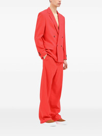 double-breasted blazer Highlights - Coral red - Double-breasted button fastening - Two front flap pockets - Shoulder pads - Buttoned-cuff sleeves Imported Composition Viscose 91%, Polyester 8%, Fabric 1%