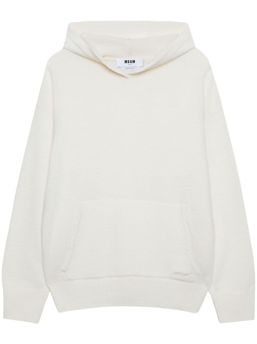 logo-embroidered hoodie Highlights - White - Long sleeves - Front pouch pocket - Classic hood - Ribbed cuffs and hem - Oversize arms Made in Italy Composition Wool 70%, Cashmere 30% Washing instructions Read Manufacturer Guidelines