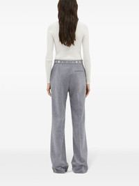 eyelet-detail tailored trousers Highlights - Grey - Eyelet detailing - Concealed front fastening - Two side slit pockets - Pressed crease - Tailored design - Rear welt pocket - Extra-long length - Straight leg Made in Italy Composition Lining: Polyester 100% Outer: Virgin Wool 100%