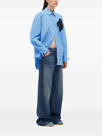 floral-applique shirt Highlights - Cornflower blue - Front button fastening - Buttoned-cuff sleeves - Spread collar - Curved hem Imported Composition Fabric 100%