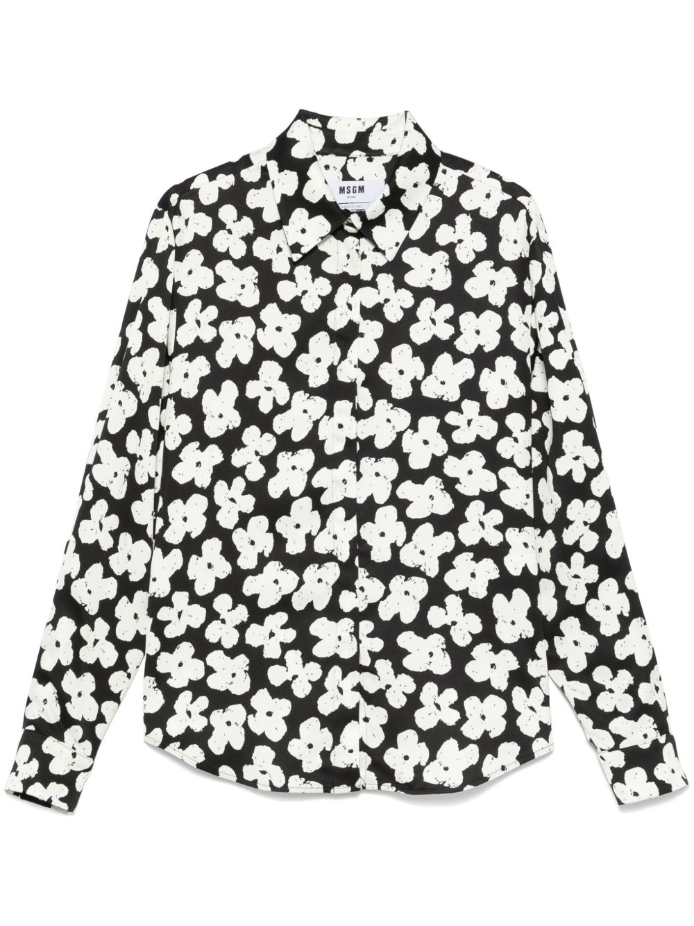 Black satin shirt with MSGM "Puffy flowers" print