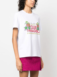 Solid color cotton crewneck t-shirt with "club paradiso" graphic
