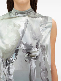 graphic-print mini dress Highlights - Grey - All-over graphic print - Mock neck - Concealed rear zip fastening - Sleeveless - Thigh-length - Straight hem Imported Composition Polyester 100%