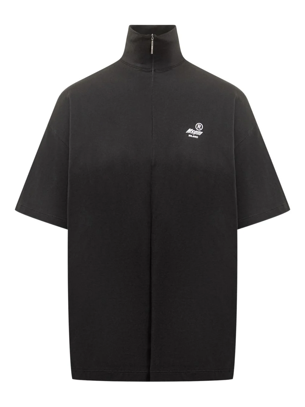 Black jersey T-shirt with high neck and zip