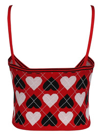 heart-pattern knitted top Highlights - Red - Heart pattern - Argyle design - Spaghetti straps - V-neck Made in Italy Composition Viscose 80%, Polyester 20% Washing instructions Read Manufacturer Guidelines