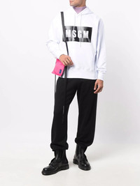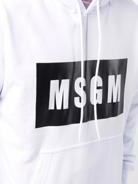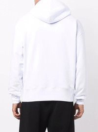 high-contrast logo hoodie optical white cotton logo print at the chest drawstring hood round neck long sleeves front pouch pocket Made in Italy Composition Cotton 100% SIZE & FIT Model measurements Height 6 ft 1 in(1.85 m) Bust/Chest 37.79 in(96 cm) Hips 37.4 in(95 cm) Waist 30.7 in(78 cm) FittingInformation This piece fits true to size. We recommend you get your regular size Cut for a loose fit Made with a mid-weight fabric Washing instructions Hand Wash