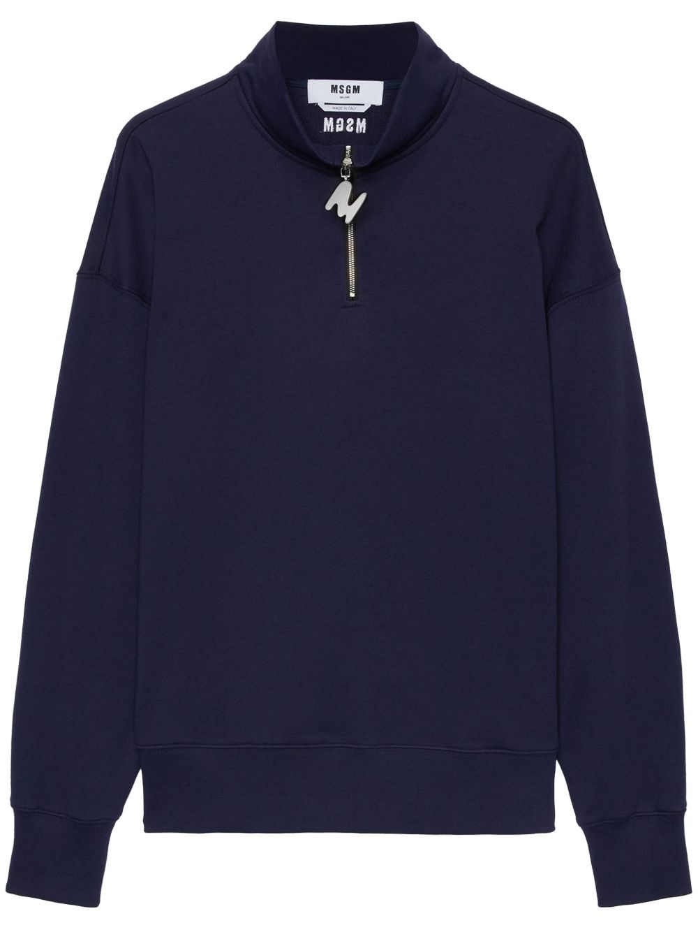 high-neck sweatshirt Highlights - Navy blue - Short front zip fastening - Long sleeves - Branded zip puller Imported Composition Fabric 100%