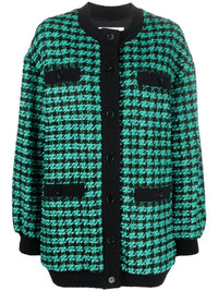 houndstooth-pattern tweed cardi-coat Highlights - Aqua green/jet black - Cotton-wool blend - Tweed - Houndstooth pattern - Box-pleat detail - Crew neck - Front button fastening - Four front patch pockets - Drop shoulder - Long sleeves - Ribbed cuffs and hem Made in Italy Composition Outer: Cotton 41%, Acrylic (Fiber) 32%, Polyester 22%, Wool 3%, Viscose 2% Lining: Polyester 100% SIZE & FIT Model measurements Height 5 ft 10 in(1.78 m) Bust/Chest 30.7 in(78 cm) Hips 36.22 in(92 cm) Waist 25.59 in(65 cm) FittingInformation Designed to be unstructured, offering a loose fit throughout The ribbed hem offers a close, comfortable fit Made with a midweight knit, this piece offers some stretch This piece fits true to size – take your usual size Washing instructions Dry Clean Only