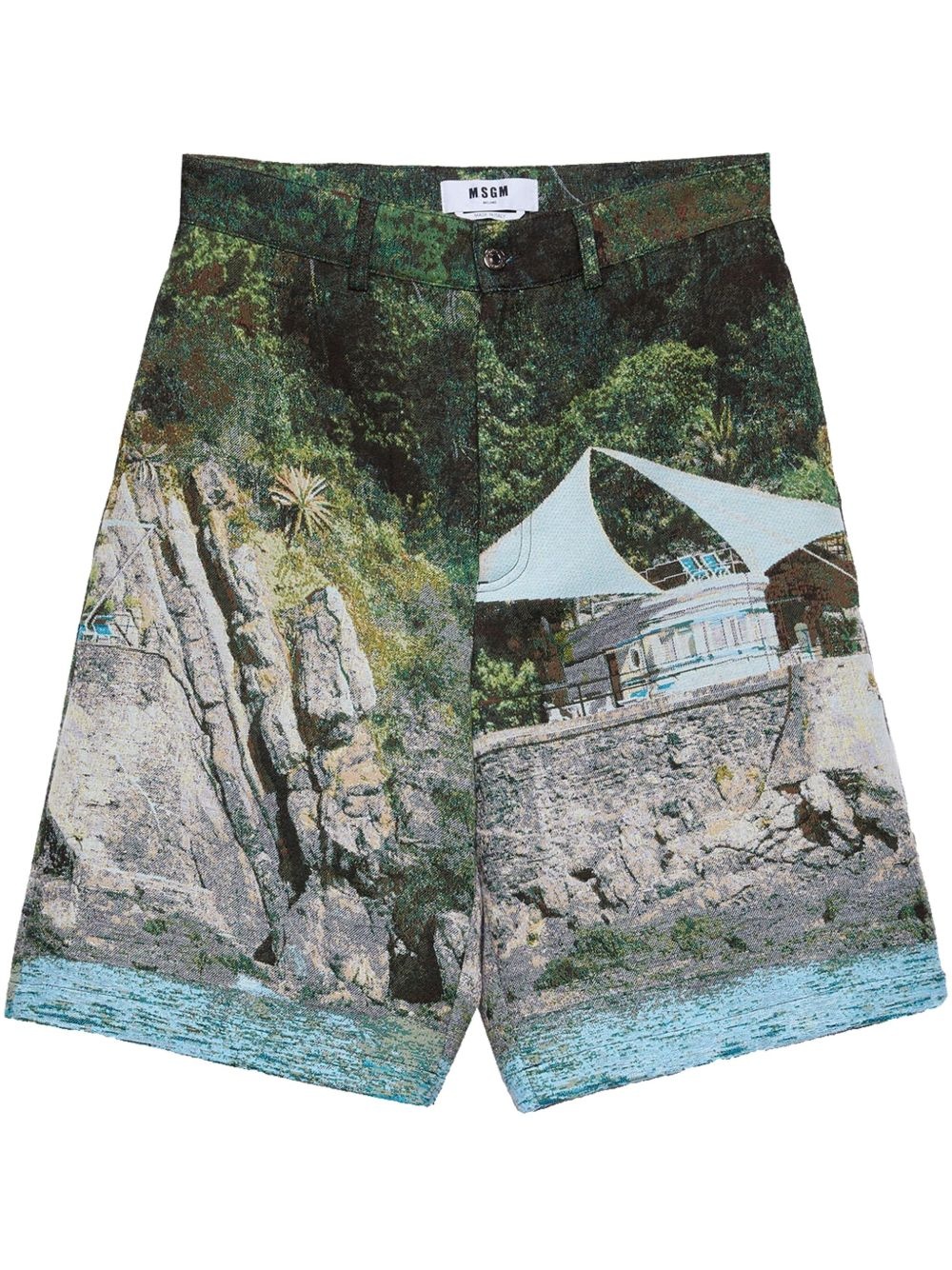 La Vedetta-print shorts Highlights - Forest green - Concealed fly and button fastening - Two side inset pockets - Two rear patch pockets - Belt loops Made in Italy Composition Cotton 100%, Polyester 100%