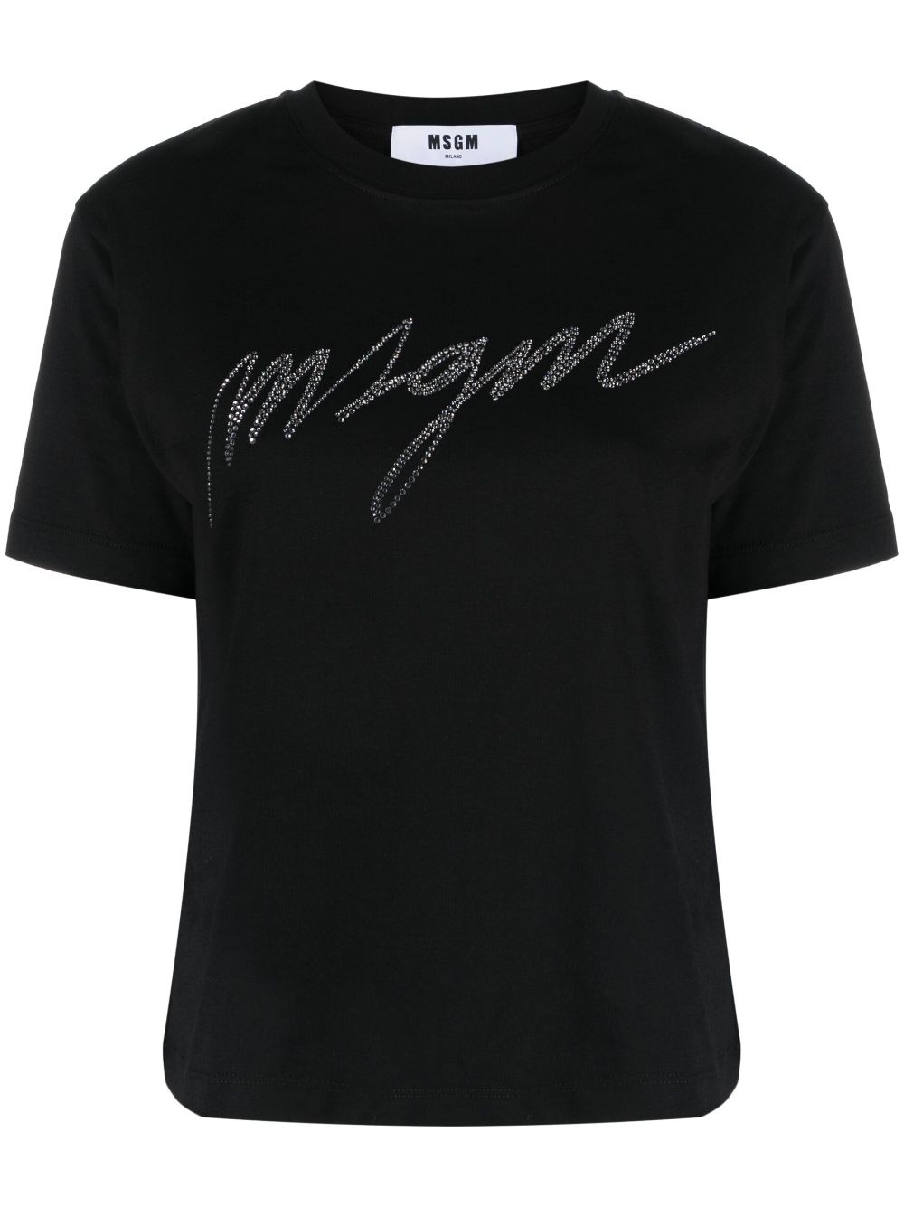 logo-applique cotton T-shirt Highlights - Black - Cotton - Crystal embellishment - Applique logo - Crew neck - Short sleeves - Straight hem Made in Italy Composition Cotton 100% SIZE & FIT Model measurements Height 5 ft 11 in(1.8 m) Bust/Chest 31.49 in(80 cm) Hips 36.22 in(92 cm) Waist 25.59 in(65 cm) FittingInformation Designed to be unstructured, offering a loose fit throughout Made from a midweight non-stretch fabric, this piece offers minimal elasticity when worn This piece fits true to size – take your usual size Washing instructions Hand Wash