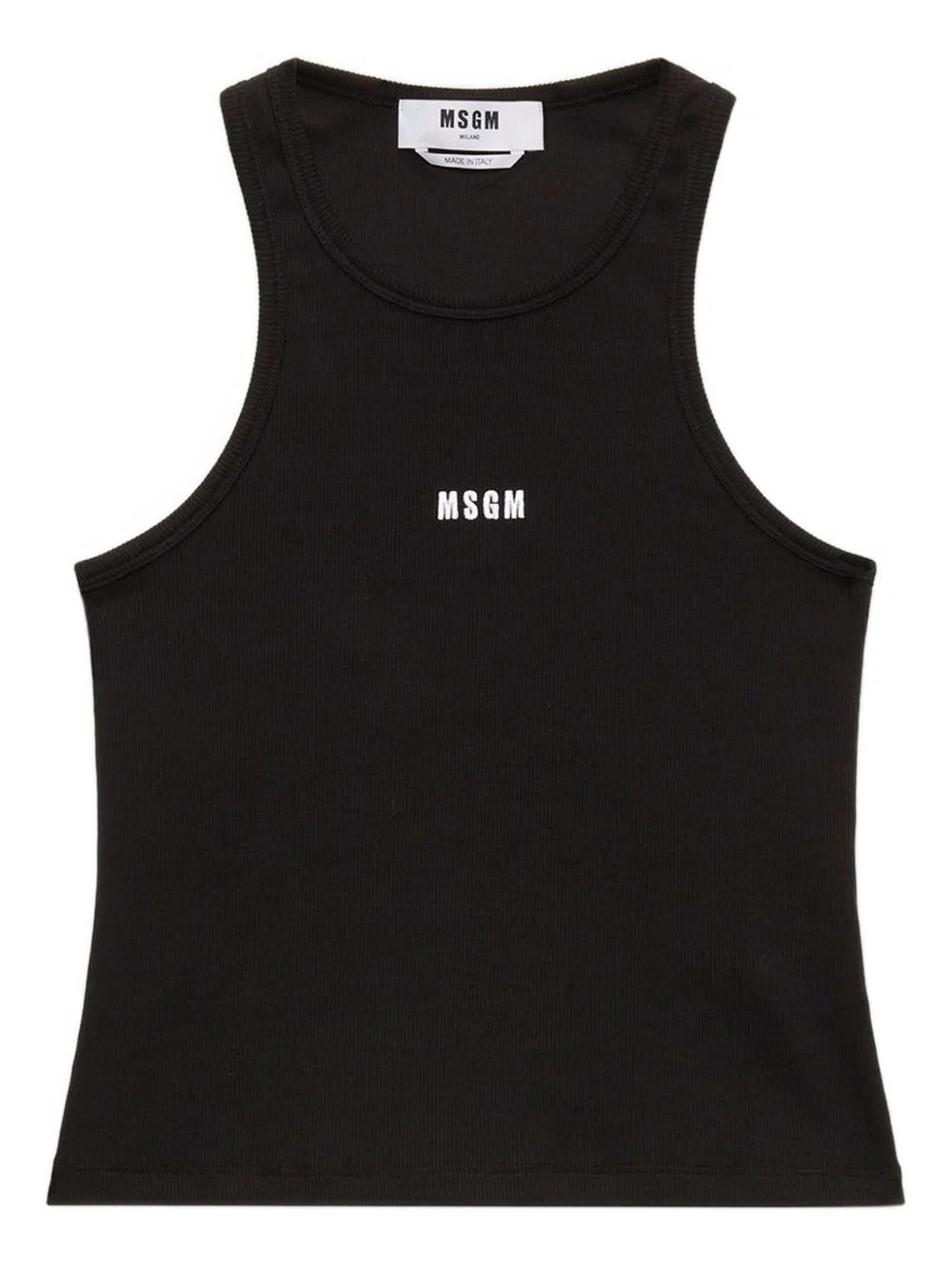 logo-detail ribbed tank top Highlights - Black - Ribbed texture - Logo detail - Round neck - Sleeveless - Straight hem Made in Italy Composition Fabric 100% Washing instructions Read Manufacturer Guidelines