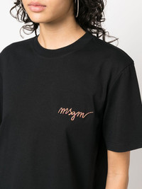 logo-embroidered cotton T-shirt black cotton jersey knit embroidered logo at the chest round neck short sleeves straight hem Made in Italy Composition Cotton 100% SIZE & FIT Model measurements Height 5 ft 9 in(1.76 m) Bust/Chest 31.88 in(81 cm) Hips 35.43 in(90 cm) Waist 24.8 in(63 cm) FittingInformation This piece fits true to size. We recommend you get your regular size Cut for a loose fit Made with a mid-weight fabric Washing instructions Machine Wash