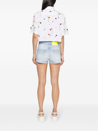 logo-embroidered denim shorts Highlights - Light blue - Cotton - Washed denim - Contrast stitching - Belt loops - Classic five pockets - Embroidered logo to the front - Leather tag - Concealed fly and button fastening Made in Italy Composition Lining: Polyester 65%, Cotton 35% Outer: Cotton 100% SIZE & FIT Model measurements Height 5 ft 11 in(1.8 m) Bust/Chest 33.07 in(84 cm) Hips 37.4 in(95 cm) Waist 25.19 in(64 cm) FittingInformation Designed for a slim fit that sits just away from the body offering a close yet comfortable fit Slightly short in length; consider your own measurements Sturdy and hard-wearing, this denim piece offers no stretch This piece fits true to size – take your usual size