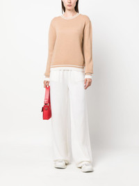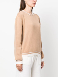 logo-embroidered round-neck jumper Highlights - Camel brown - White - Wool-cashmere blend - Ribbed cuffs and hem - Contrasting trim - Embroidered logo to the front - Crew neck - Long sleeves - Straight hem Made in Italy Composition Wool 70%, Cashmere 30% SIZE & FIT Model measurements Height 5 ft 10 in(1.78 m) Bust/Chest 33.46 in(85 cm) Hips 36.22 in(92 cm) Waist 23.22 in(59 cm) FittingInformation Designed for a relaxed fit, this piece allows for comfort and movement when worn The ribbed hem offers a close, comfortable fit Made with a midweight knit, this piece offers some stretch This piece fits true to size – take your usual size
