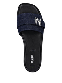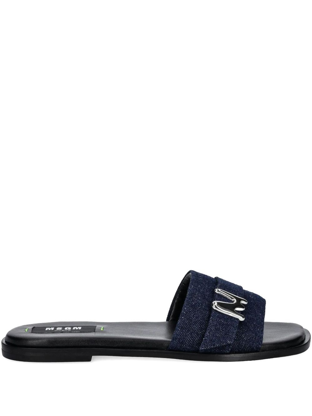 logo-plaque slides Highlights - Indigo blue - Slip-on style - Strap detailing - Branded footbed - Square open toe Made in Italy Composition Outer: Cotton 100% Lining: Leather 100%, Cotton 100% Sole: Leather 100%