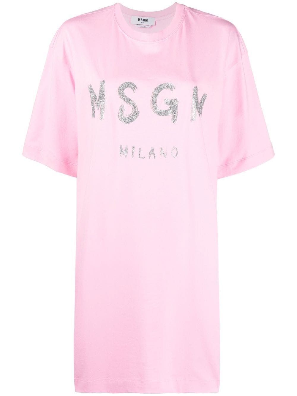 logo-print cotton T-shirt dress pink/silver cotton jersey knit logo print to the front round neck short sleeves straight hem Made in Italy Composition Cotton 100% SIZE & FIT Model measurements Height 5 ft 9 in(1.76 m) Bust/Chest 31.88 in(81 cm) Hips 35.43 in(90 cm) Waist 24.8 in(63 cm) FittingInformation This piece fits true to size. We recommend you get your regular size Cut for a loose fit Made with a mid-weight fabric Washing instructions Hand Wash