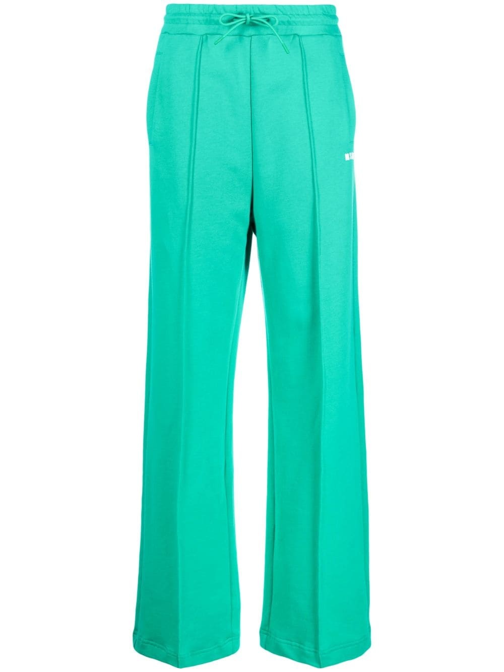 logo-print cotton track pants Highlights - Teal green - Cotton - Pressed crease - Logo print to the side - Drawstring waist - Two side inset pockets - Straight leg - Straight hem Made in Italy Composition Cotton 100% SIZE & FIT Model measurements Height 5 ft 11 in(1.8 m) Bust/Chest 31.49 in(80 cm) Hips 36.22 in(92 cm) Waist 25.59 in(65 cm) FittingInformation Designed for a straight-leg fit, these trousers allow for a close fit at the waist and an unrestricted, comfortable fit over the leg Adjust this piece’s waistband to your preference using the drawstring Made from a midweight non-stretch fabric, this piece offers minimal elasticity when worn This piece fits true to size – take your usual size Washing instructions Hand Wash