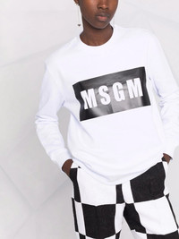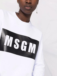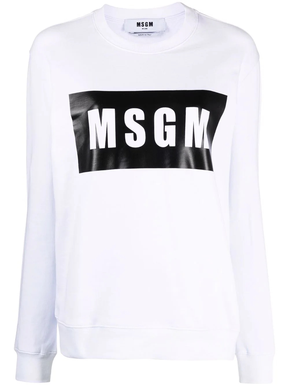 logo-print crew neck sweatshirt bright-white/black cotton logo print to the front crew neck long sleeves ribbed hem Made in Italy Composition Cotton 100% SIZE & FIT Model measurements Height 5 ft 11 in(1.8 m) Bust/Chest 32.67 in(83 cm) Hips 36.22 in(92 cm) Waist 24.4 in(62 cm) FittingInformation This piece fits true to size. We recommend you get your regular size Cut for a relaxed fit Made with a mid-weight fabric Washing instructions Hand Wash