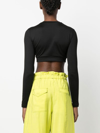 logo-print cropped top black stretch-design tonal design logo print to the front crew neck long sleeves cropped Made in Italy Composition Polyamide 91%, Spandex/Elastane 9% SIZE & FIT Model measurements Height 5 ft 10 in(1.77 m) Bust/Chest 29.92 in(76 cm) Hips 34.25 in(87 cm) Waist 23.62 in(60 cm) FittingInformation This piece fits true to size. We recommend you get your regular size Cut for a close fit Made with a mid-weight stretch fabric