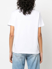 logo-print glitter T-shirt white/silver cotton jersey knit logo print to the front glitter detailing round neck short sleeves straight hem Made in Italy Composition Cotton 100% SIZE & FIT Model measurements Height 5 ft 9 in(1.76 m) Bust/Chest 31.88 in(81 cm) Hips 35.43 in(90 cm) Waist 24.8 in(63 cm) FittingInformation This piece fits true to size. We recommend you get your regular size Cut for a relaxed fit Made with a mid-weight fabric Washing instructions Hand Wash