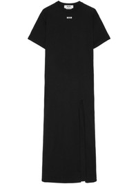 logo-print maxi dress Highlights - Black - Crew neck - Drop shoulder - Short sleeves - Side slit Imported Composition Fabric 100%