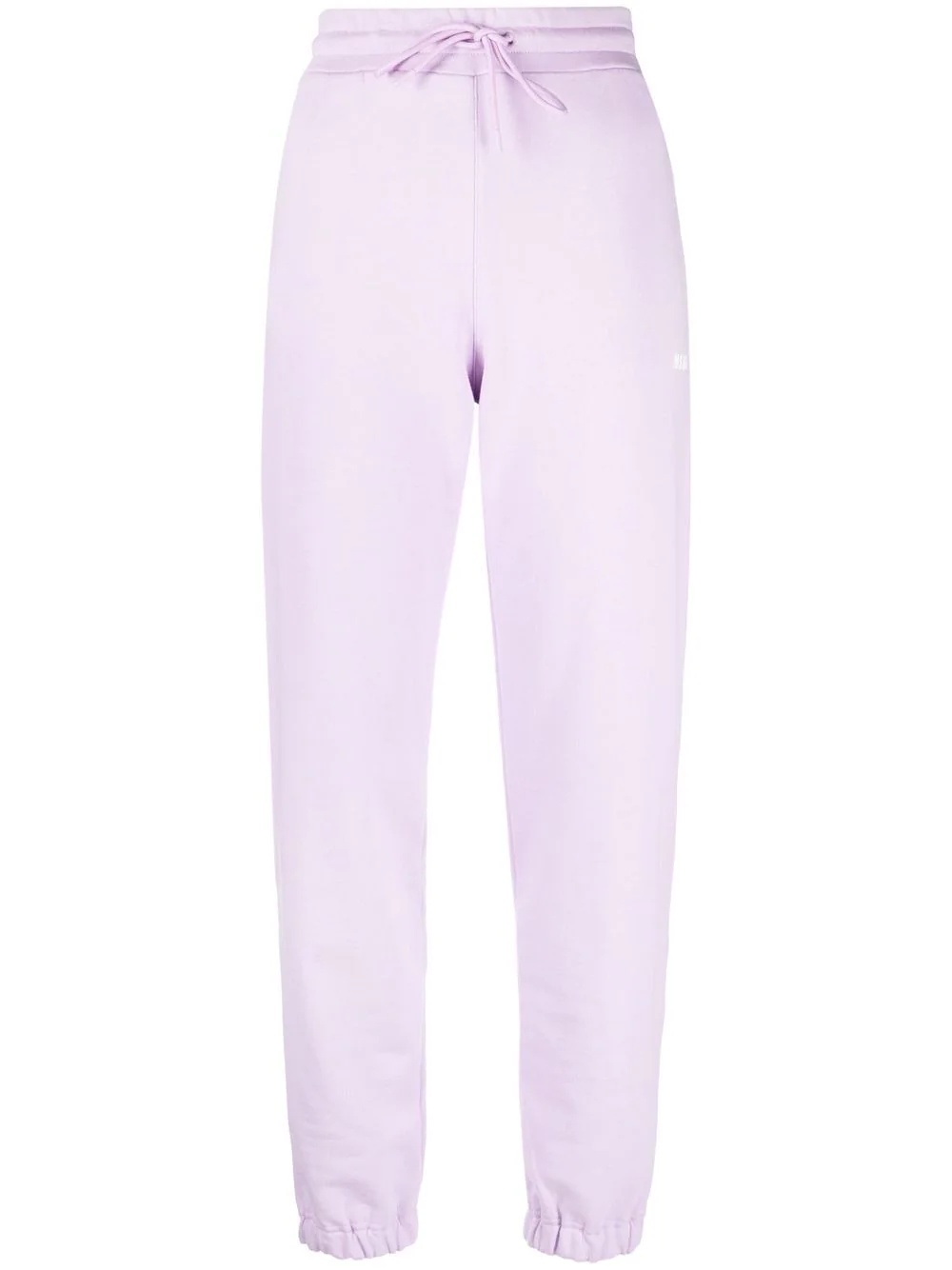 logo-print track pants Crafted from soft cotton, these sweatpants from MSGM are decorated with a side logo print which stands out against the lilac-hued background. Made in Italy Composition Cotton 100% SIZE & FIT Model measurements Height 5 ft 10 in(1.78 m) Bust/Chest 32.28 in(82 cm) Hips 35.03 in(89 cm) Waist 23.22 in(59 cm) FittingInformation This piece fits true to size. We recommend you get your regular size Designed to be loose over the leg with a fitted waist and hem Made with a mid-weight fabric Washing instructions Hand Wash